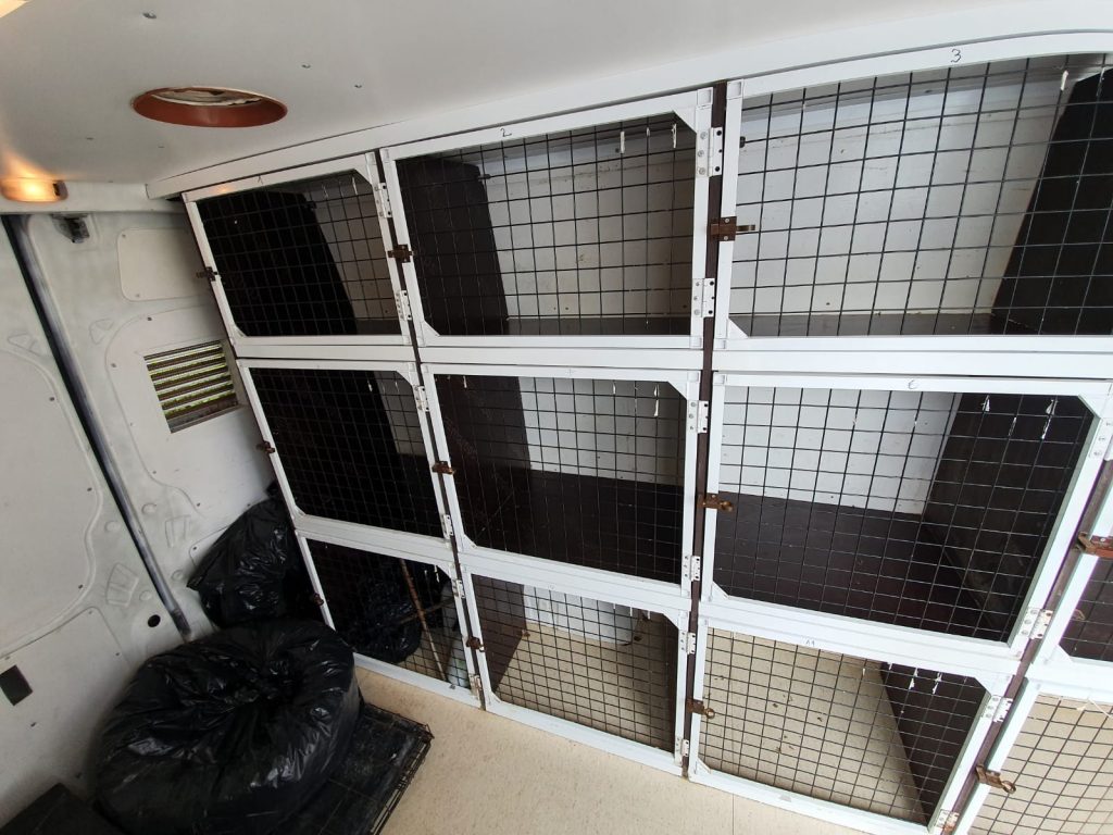 Echipam dube si autoutilitare cu custi pentru transportul animalelor de companie precum caini si pisici.